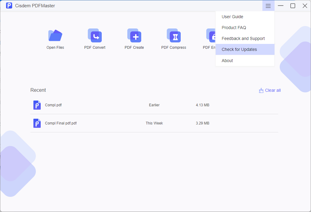 Cisdem will list the recently opened PDF files under Recent Files, also it will list the folder of those recently opend PDF files under Recent Folders.