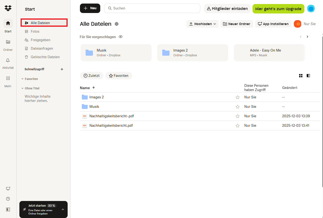 - Vermeiden Sie, Dateien hochzuladen, die sich schon auf Ihrem Konto befinden.