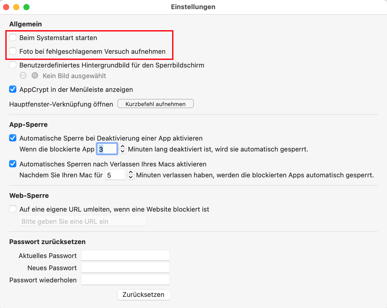 - Kennwort erforderlich, um AppCrypt zu beenden/deinstallieren oder Einstellungen zu konfigurieren usw.