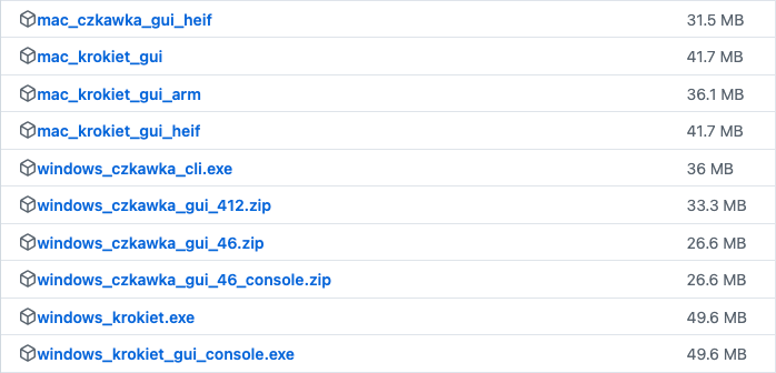 2. In a version, for example, Version 9.0.0, go the the Assets section and find versions for Windows. (You may need to click Show all.) For average users, windows_czkawka_gui can be the most suitable. I downloaded windows_czkawka_gui_46.zip.