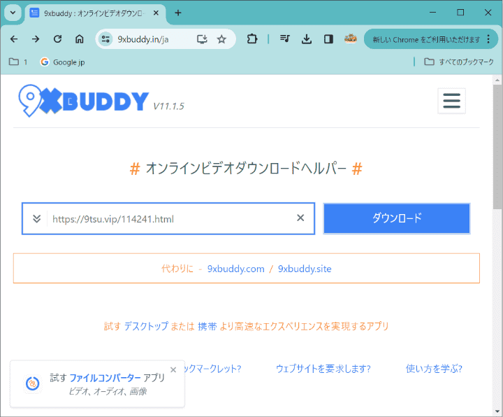 ここでは、現時点で本当に無料かつソフトインストール不要で9TSU動画をダウンロードできるサイトを2つを紹介します。