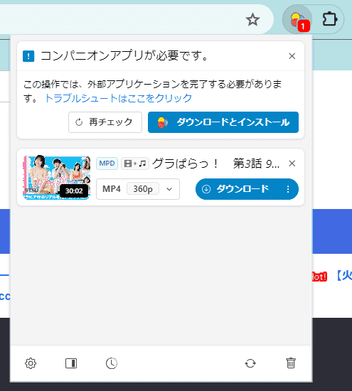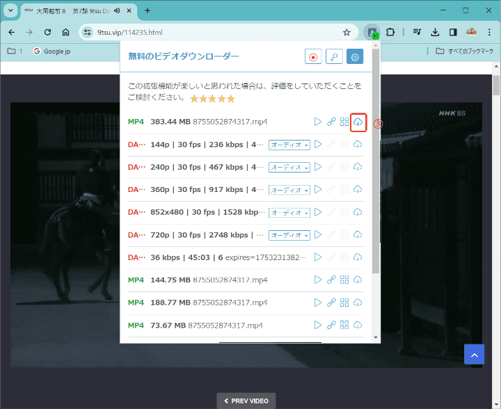 動画をダウンロードする際に一番便利だと思われているのがブラウザの拡張機能かもしれません。わざわざURLなどをコピーしたり貼り付けたりする必要がなく、ダウンロードしたい9TSU動画のページに入り、動画を再生すれば、拡張機能が自動的に動画を検出します。