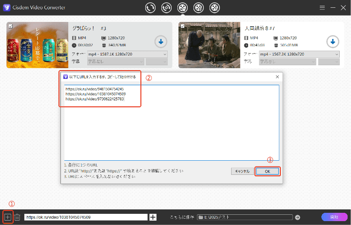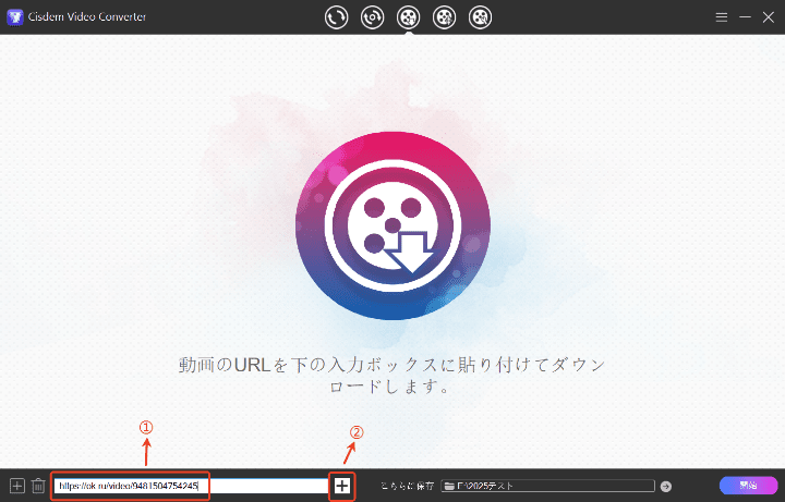 ステップ 4. Cisdem Video Converterに戻ります。左下のテキストボックスに先ほどコピーしたURLを貼り付け、右の「+」ボタンをクリックして、動画を分析します。