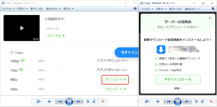 また、このように、分析はできるが、480p以上の画質でダウンロードしたい場合はソフトをインストール必要があり、そして480pで我慢しようと思ってダウンロードボタンを押すと、結局ダウンロードが失敗して、ソフトのインストールが勧められる場合もあります。
