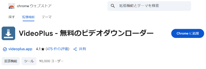 - ChromeウェブストアでVideoPlusという拡張機能を見つけ、Chromeに追加します。