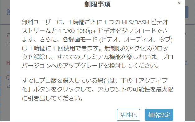 そして、無料でダウンロードはできるとは言え、制限がありますので、複数の動画を短時間内でダウンロードしたい場合、料金を払う必要があります。