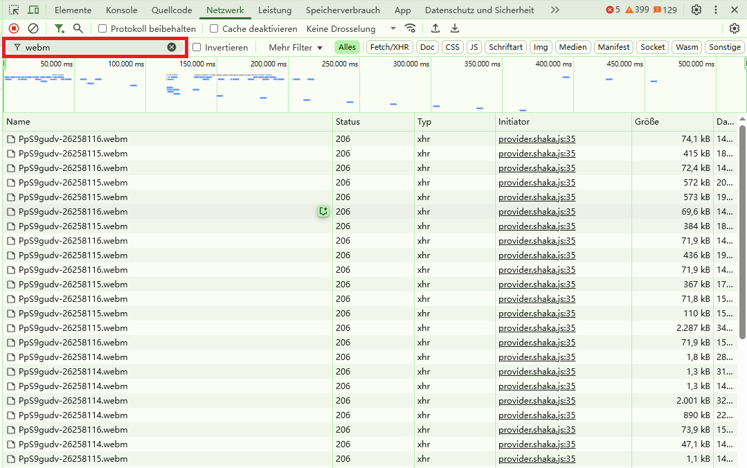 Ich auch versuchte, ein anderes JW-Player-Video herunterzuladen. Als ich „mp4“ in das Suchfeld eingab, keine entsprechende Ergebnisse. In diesem Fall sah ich alle Elemente durch und prüfen, ob es eine Datei mit Videoerweiterung gibt. Das Videoformat „webm“ habe ich gefunden.