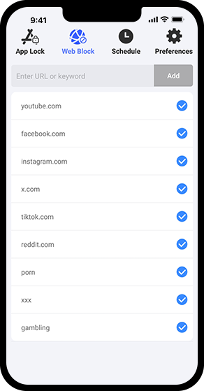 Block porn, gambling and other bad platforms to help break bad habits and build positive change.