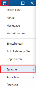 - Dann wird das Hauptfenster geöffnet. Tippen Sie auf Advanced, dann auf Options, wählen German aus, um Deutsch als Oberfläche-Sprache anzuzeigen.