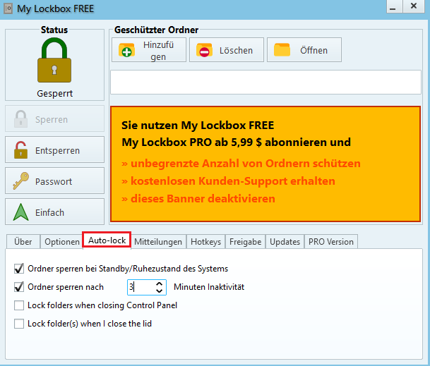 - Klicken Sie anschließend auf Auto-lock, richten Sie Einstellungen ein, wie z. B. Ordner bei Ruhezustand des Systems sperren.