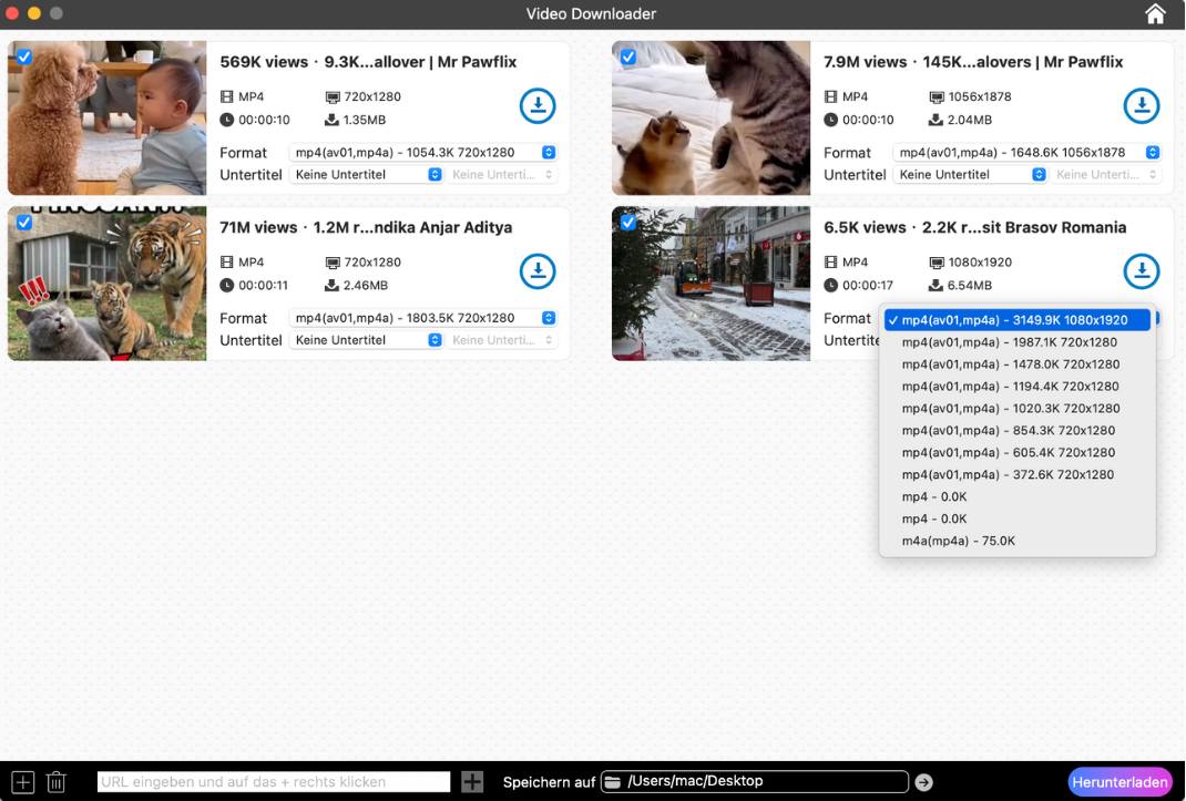 - Alle Videos durch Klick auf das Download-Button direkt downloaden