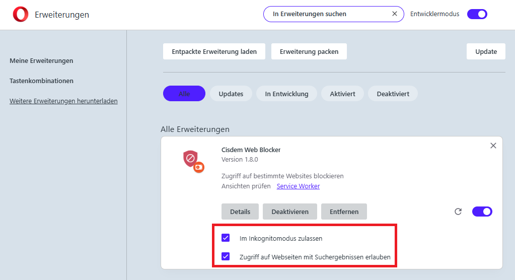 So sperren Sie eine Website in Opera über eine Erweiterung