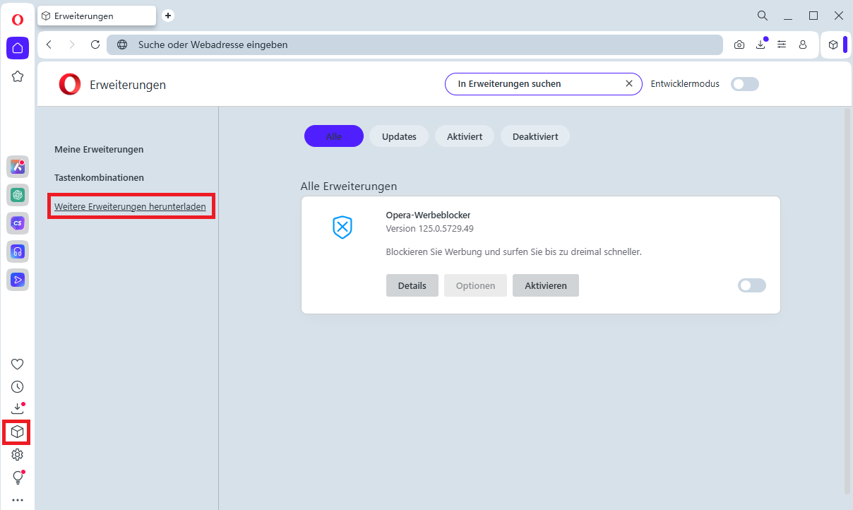 Wenn Sie keine Apps installieren möchten, gibt es noch eine andere Möglichkeit, Websites auf Opera zu sperren - und zwar durch Hinzufügen von Erweiterungen.