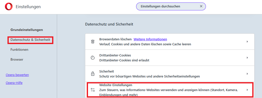 3. Klicken Sie auf Datenschutz & Sicherheit > Website-Einstellungen.