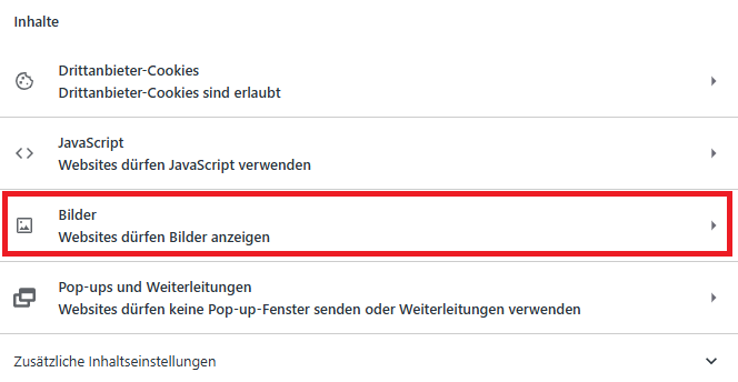 - Website-Einstellungen konfigurieren: Bilder lassen sich blockieren, jedoch nicht der gesamte Website-Inhalt.