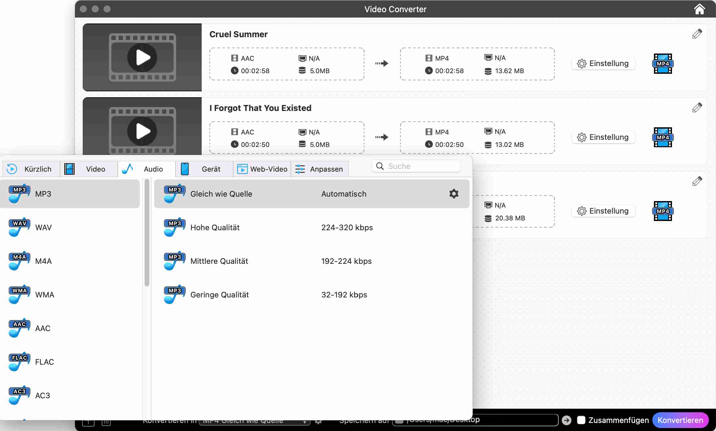 AAC in MP3 mit der Beste App - Cisdem VideoPaw umwandeln
