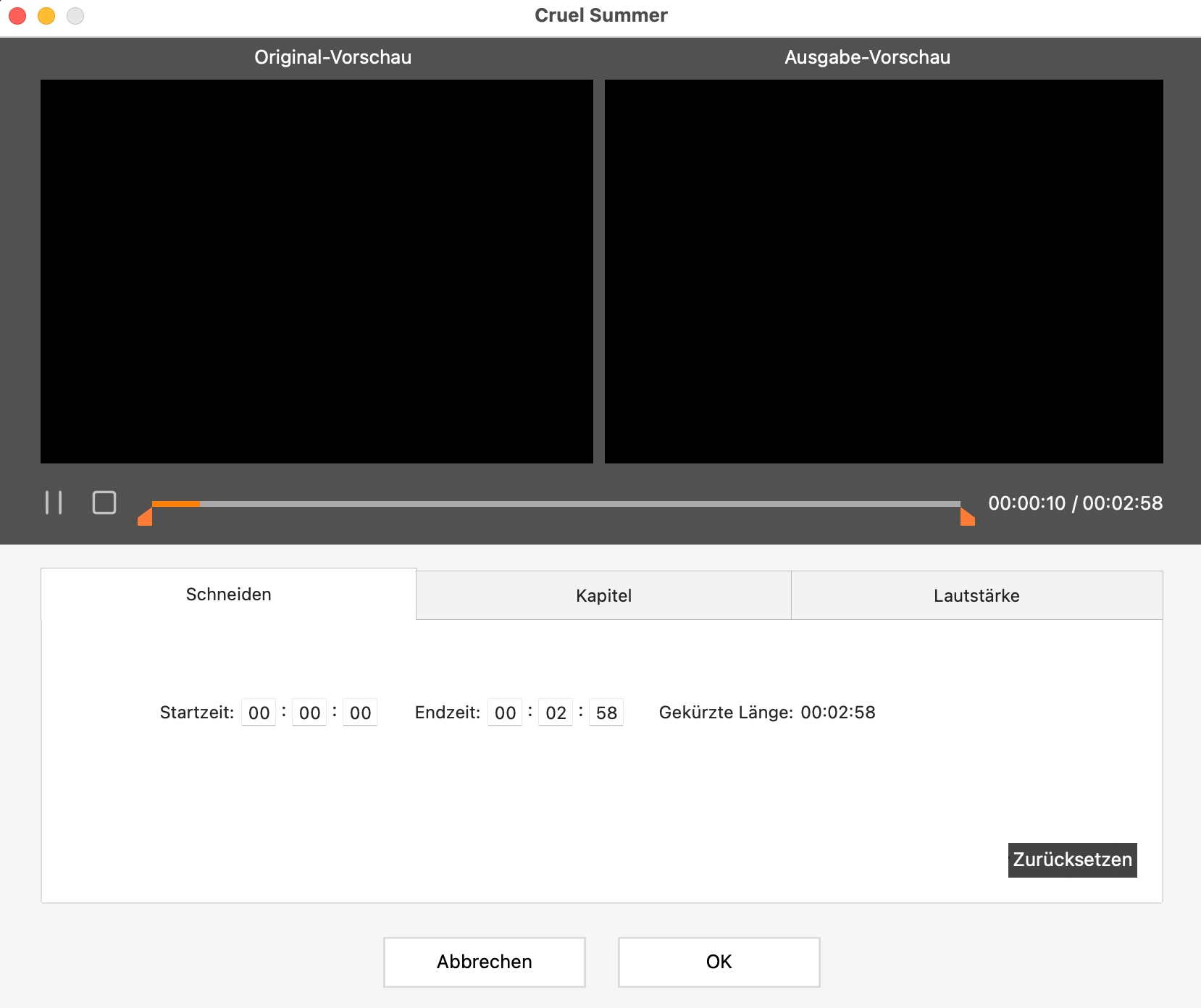 - Audiodateien vor Konvertierung zuschneiden, Kapitel hinzufügen, Lautstärke anpassen