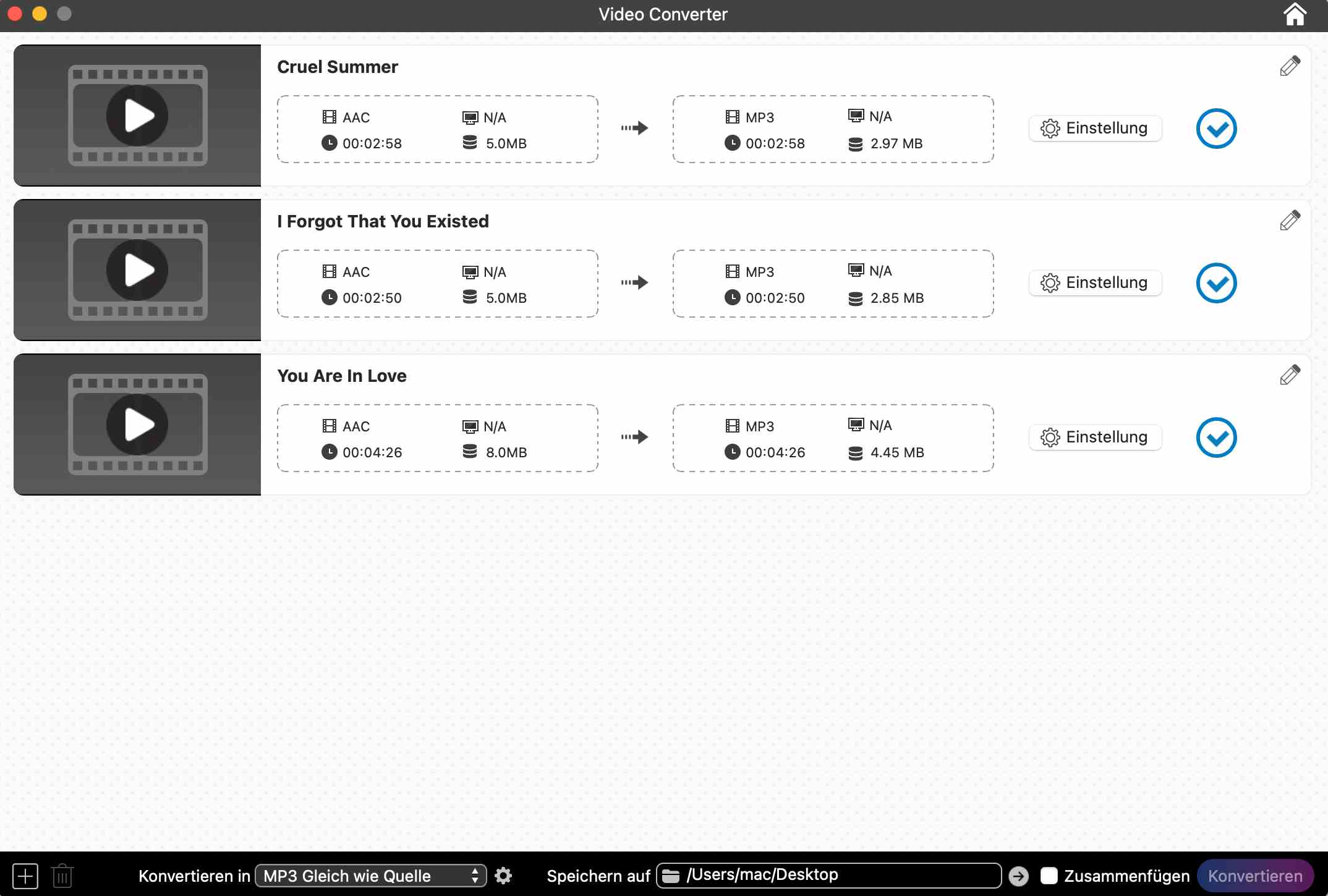 Hinweis: Die Windows-Version unterstützt Stapelkonvertierung, mit der Mac-Version kann man jedes Mal nur eine Datei konvertieren.