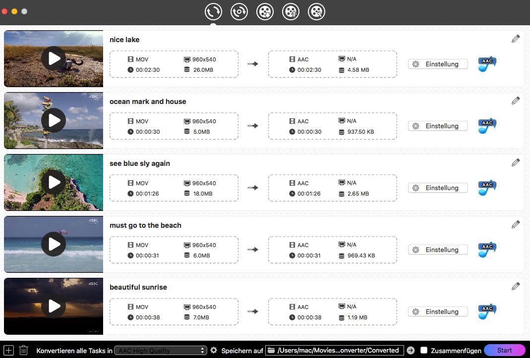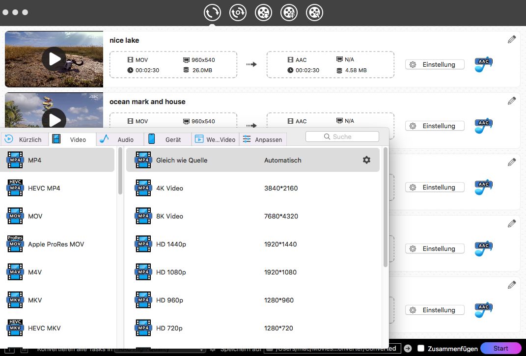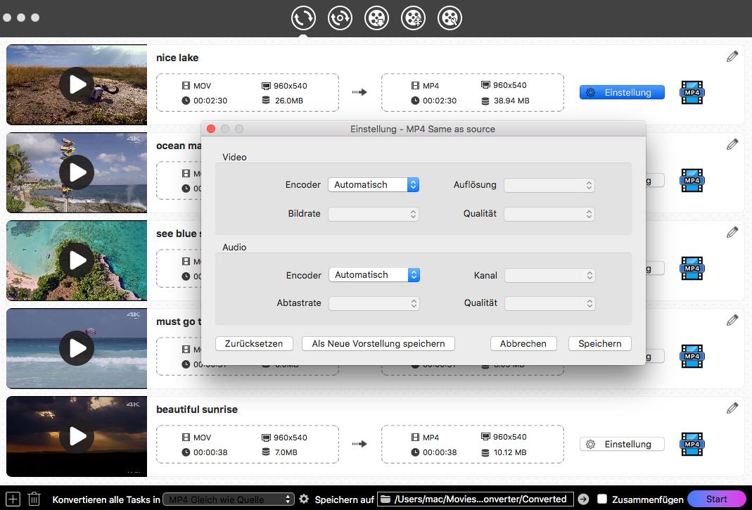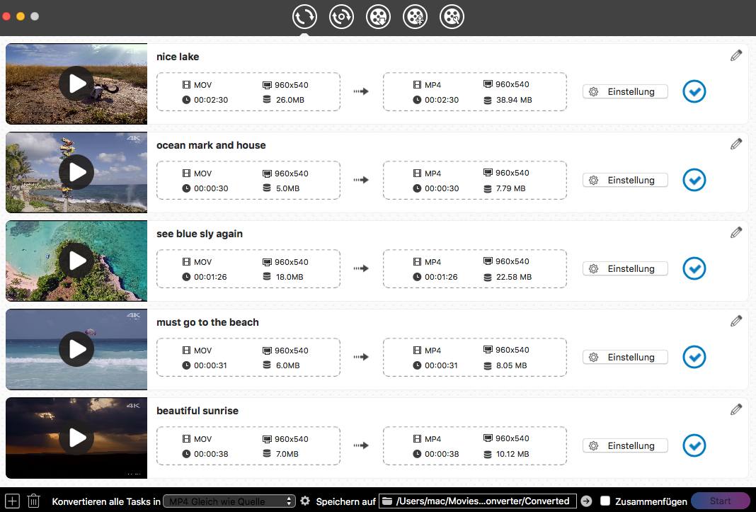 - Konvertiert mehrere MOV-Dateien gleichzeitig in MP4