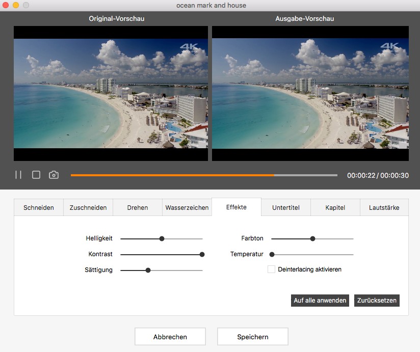 - Mit dem Converter kann man hinzugefügte MOV-Datei vor dem Exportieren bearbeiten