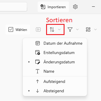 zur Entscheidung, wonach die Fotos sortiert werden. Und klicken auf