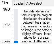 3. Wählen Sie eine Vergleichsstufe unter der Schaltfläche „Filter“ aus: „Strict“ kann exakt doppelte Bilder finden, „Loose“ findet sowohl doppelte Bilder als auch visuell ähnliche Bilder.