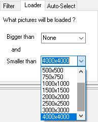 4. Klicken Sie auf „Loader“, um die Größe der zu suchenden Fotos festzulegen. (Wichtig: Wenn Sie nach Öffnen der App zuerst einen Ordner zum Scan hinzufügen, können Sie nicht die Größe der Bilder wählen.)