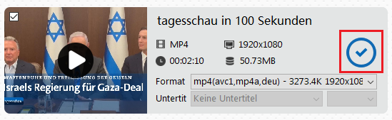 Wenn alle JW-Player-Videos erfolgreich analysiert werden, klicken Sie auf den Dropdown-Menü von „Format“, um Format und Auflösung festzulegen.