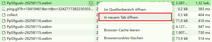 - Klicken Sie rechts auf das Video und wählen „In neuem Tab öffnen“.