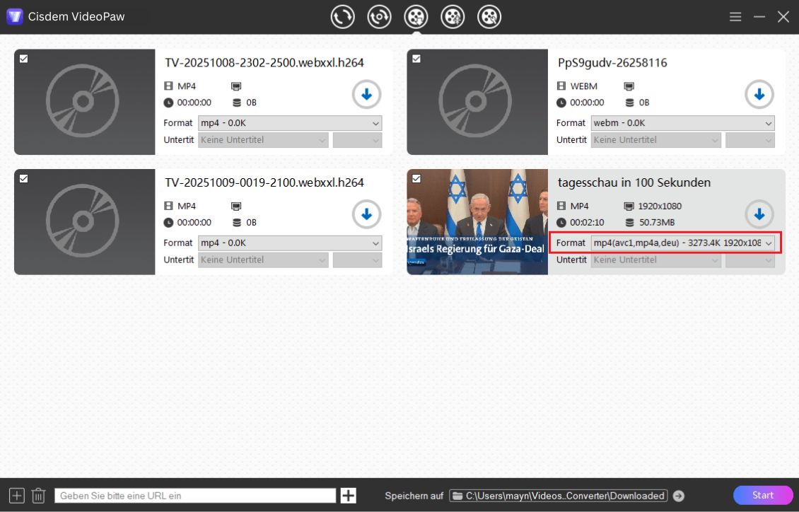 Klicken Sie auf den Button „Start“ in der rechten unteren Ecke, um den Download zu starten. Nach dem Download können Sie auf das Wiedergabetaste tippen, um Vorschau zu öffnen.