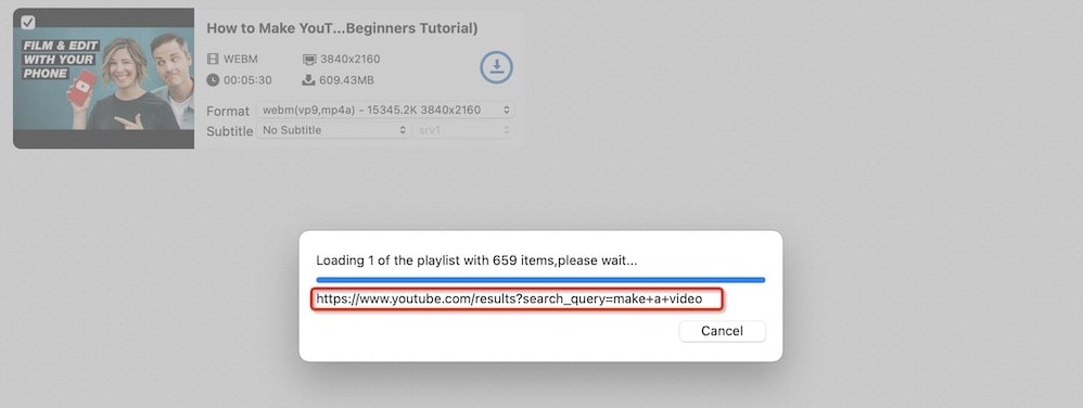 Wenn Sie ein Schlüsselwort in das YouTube-Suchfeld eingeben, werden eine große Anzahl betreffender Videos angezeigt. Die Videos kann auch Cisdem VideoPaw downloaden. Dafür können Sie die URL: https://www.youtube.com/results?search_query=[keyword] verwenden. Beachten Sie, dass eine erkannte Playlist automatisch gesprungen wird.
