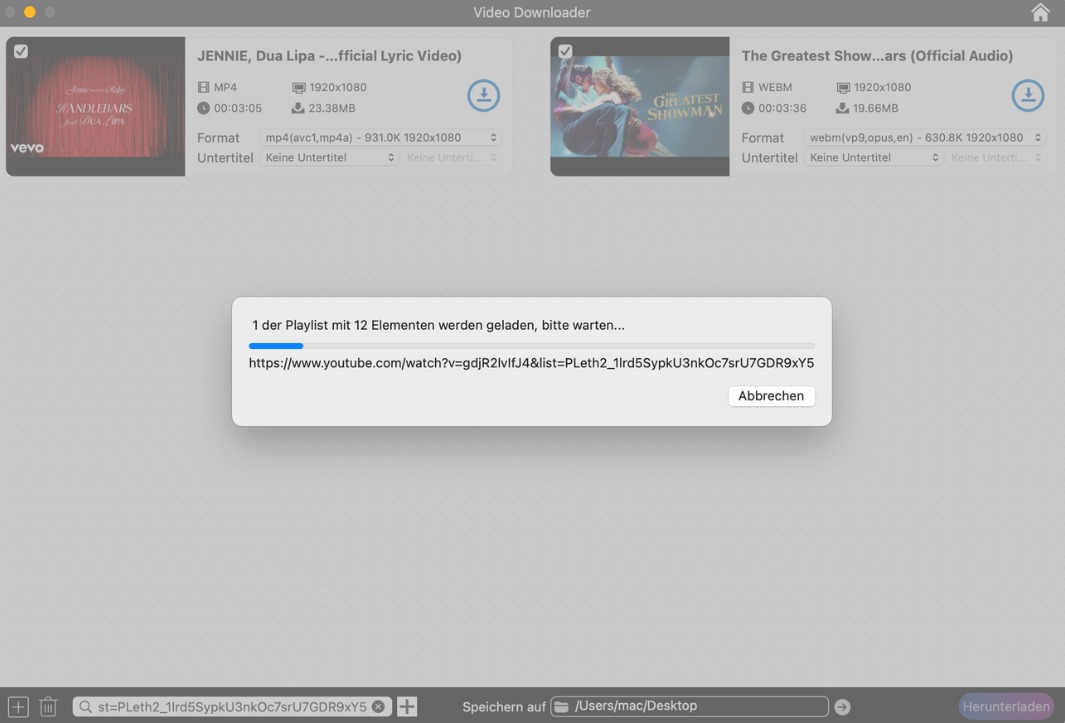 Download der Teile von YouTube-Playlist
