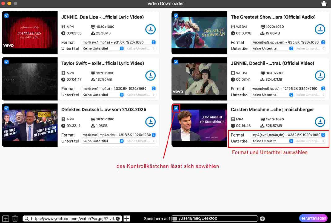 - Öffentliche, nicht gelistete Playlists, offizielle Serien, Mixe, Podcast, Shorts u. a. aus YouTube downloaden