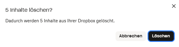 Eine Dialogbox erscheint und befragt, ob Sie die Dateien aus Ihrem Dropbox-Konto und allen Geräten löschen möchten. Klicken auf Überall löschen.![]()