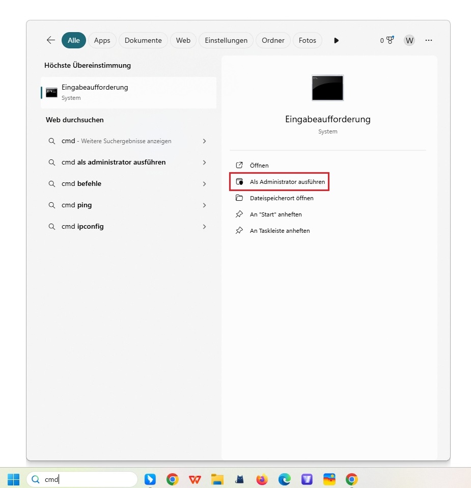 - Klicken Sie mit der rechten Maustaste auf Eingabeaufforderung.