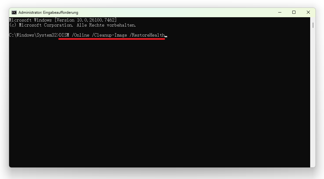 - Geben Sie folgenden Befehl ein: DISM /Online /Cleanup-Image /RestoreHealth