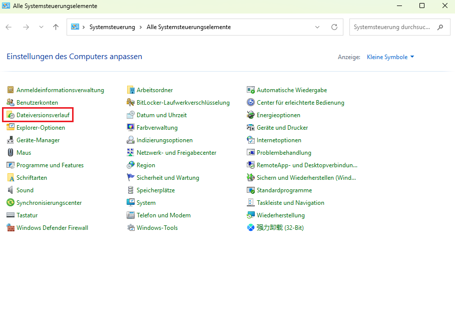 - Klicken Sie auf „Dateiversionsverlauf“.