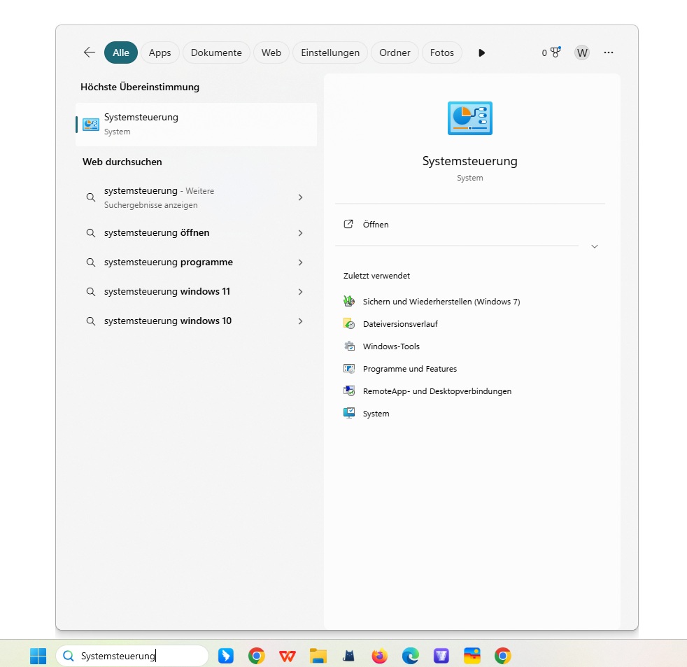 - Geben Sie in das Suchfeld Systemsteuerung ein, dann tippen auf Öffnen.