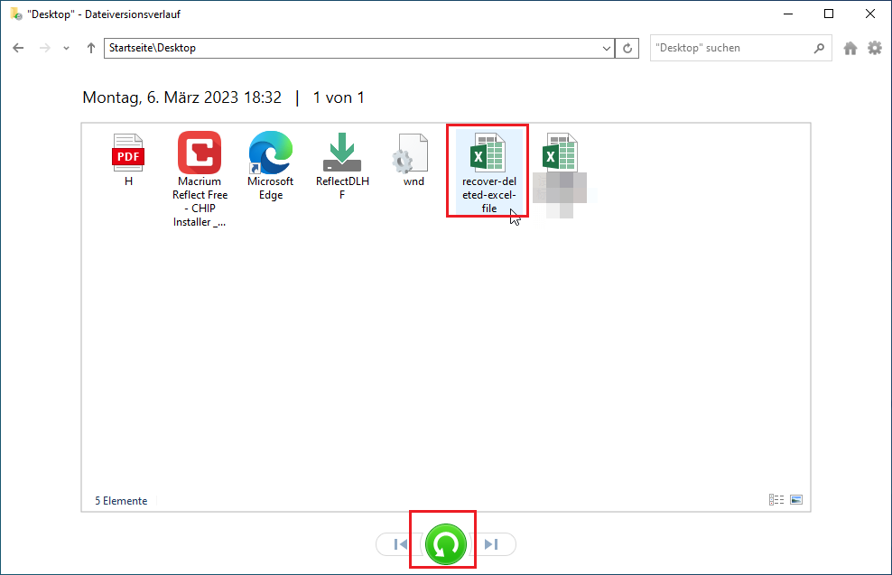 - Die Datei wird am ursprünglichen Speicherort wiederhergestellt.