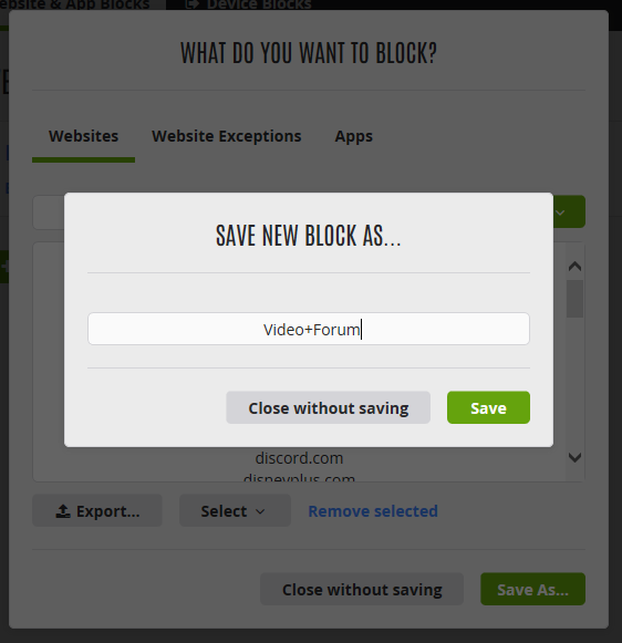 - Klicken Sie auf Websites from block, werden alle Websites in der Kategorie Distractions blockiert.