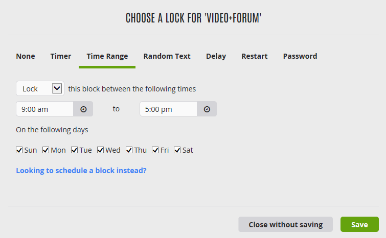 . Beachten Sie, dass der allgemeine Zeitplan auch für die Sperrung von Apps gilt.