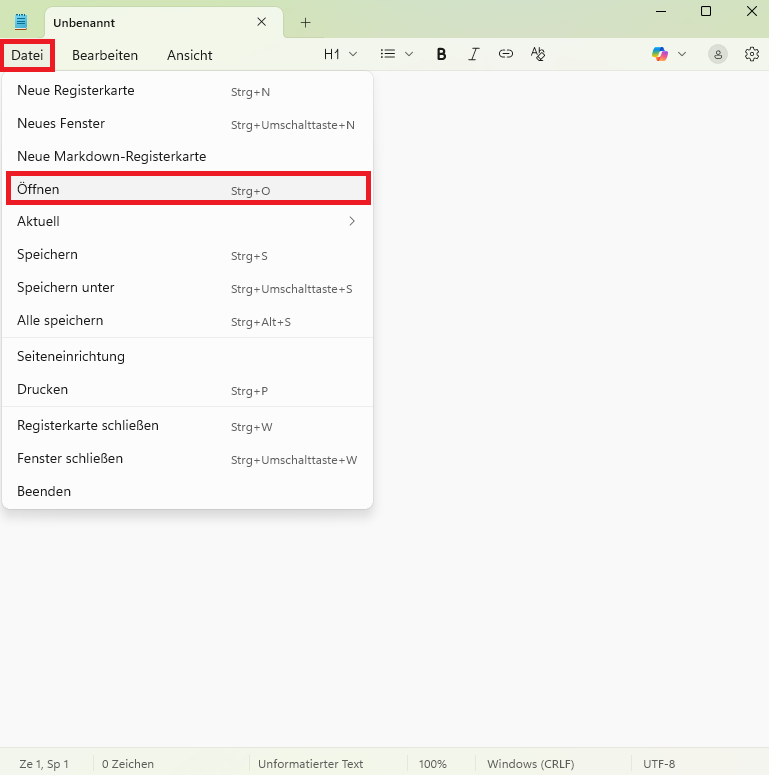 3. Klicken Sie in Notepad auf Datei > Öffnen....