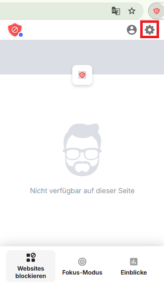 Falls nicht, klicken Sie auf das Symbol der Erweiterung in der Symbolleiste und anschließend auf das Zahnrad-Symbol in der oberen rechten Ecke.