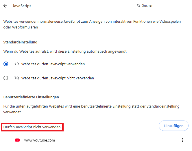Websites verwenden normalerweise JavaScript zum Anzeigen von interaktiven Funktionen wie Videospielen oder Webformularen. Wenn Sie Video-Webseiten wie z. B. YouTube, TikTok in Chrome blockieren, können Sie Chrome-Einstellungen ändern.