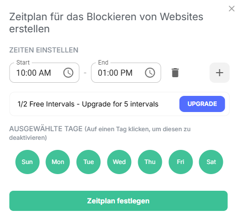 Mit der Zeitplan-Funktion können Sie den Zugriff auf Websites nicht für immer, sondern nur für eine bestimmte Zeitspanne blockieren. Folgen Sie diesen Schritten: