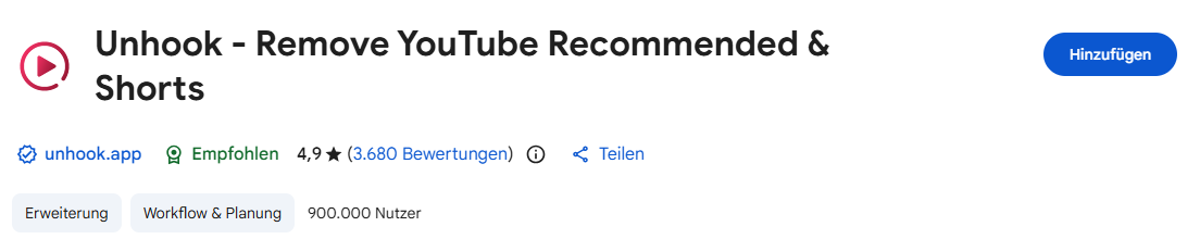 Für Chrome & Firefox: Unhook - Remove YouTube Recommended & Shorts