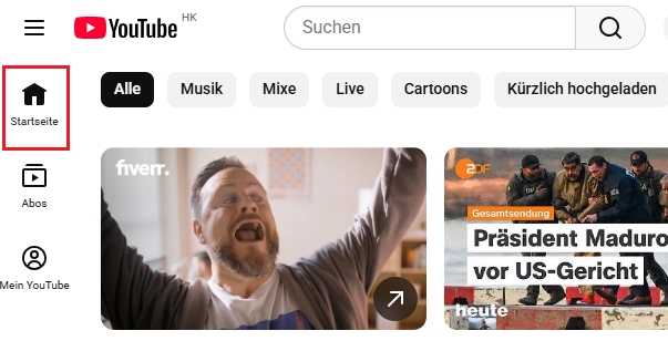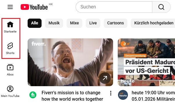 6. Dann wird YouTube Shorts nicht mehr auf der Startseite erscheinen.
