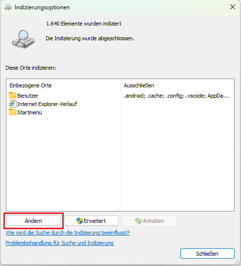 1. Geben Sie Indizierungsoptionenin Windows-Suchfeld ein. Öffnen Sie die Indizierungsoptionen App.