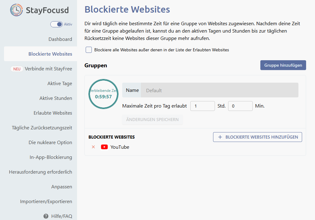 Schritt 5. YouTube in die Sperrlist hinzufügen