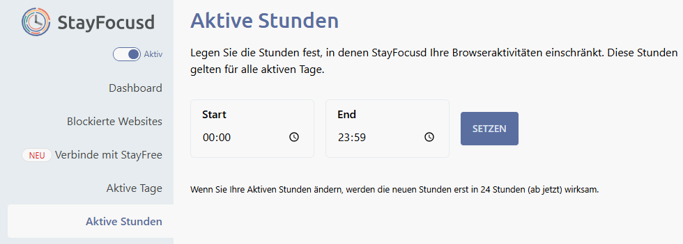 Schritt 6. Tippen Sie auf Aktive Stunden. Legen Sie die Zeiten fest, in denen StayFocusd youtube.com einschränkt.